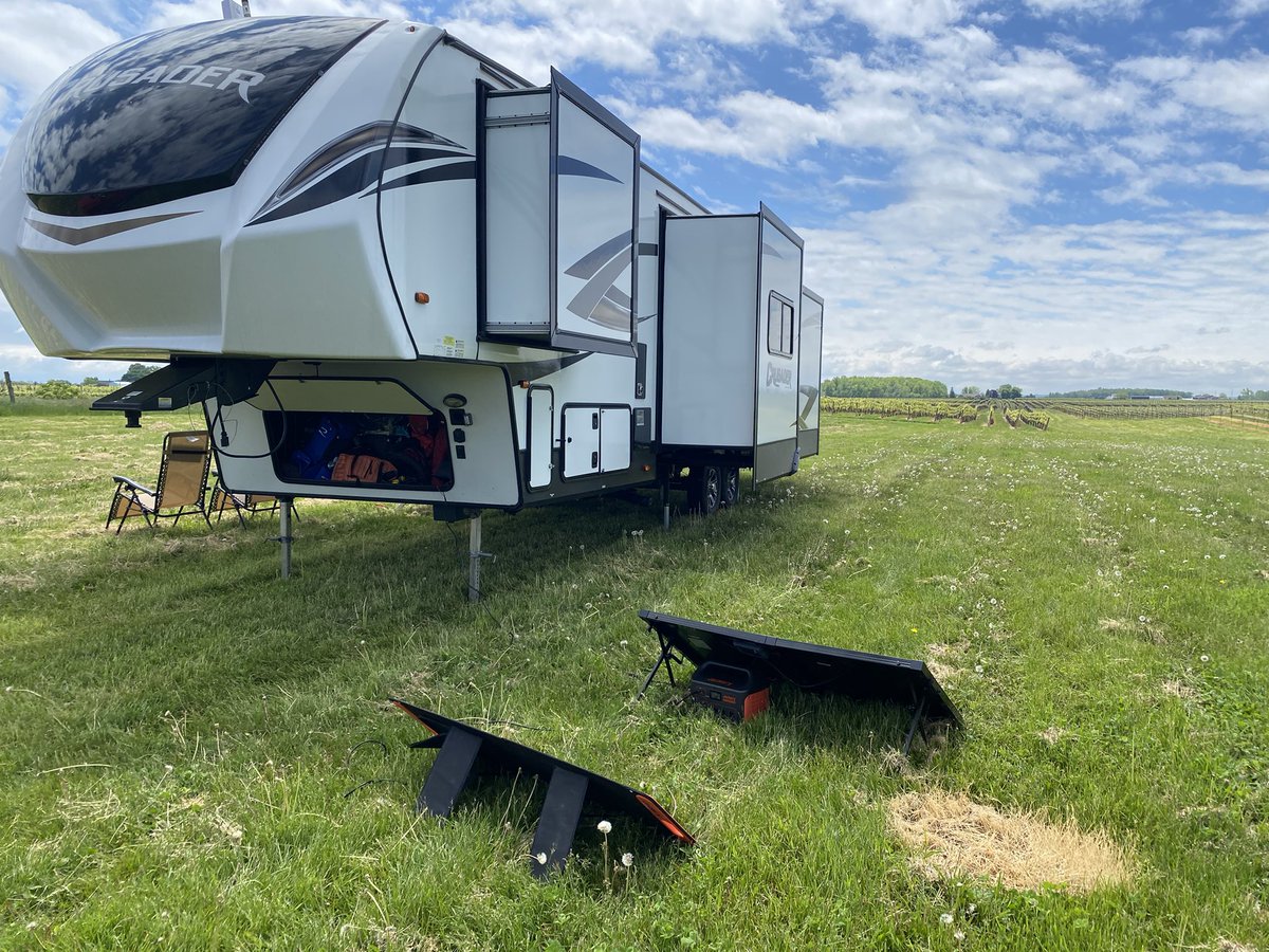 Panels out, parked at a winery. We’re off to see Niagara Falls while the batteries recharge.