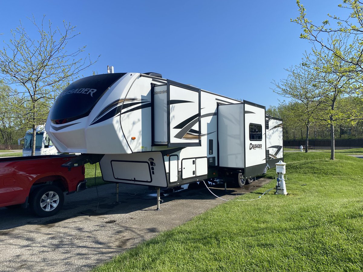 So we’re on the road again. Made it to our first stop in the new rig today! We’re parked in Erie PA and are working our way to Vermont. Excited to be back to our normal routine again!