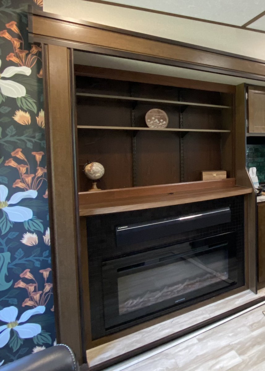 The home school nook is built! We removed the TV, ripped out the false back, added a drop-in shelf on the bottom and installed light-duty shelving. I think it looks a lot more home-y