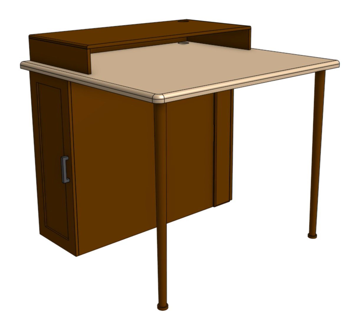 Kate finished up the new backsplash for the kitchen. I’ve been modeling up the cabinetry we need for my desk, litter box, and the bunks beds for the kiddos. Making good progress.