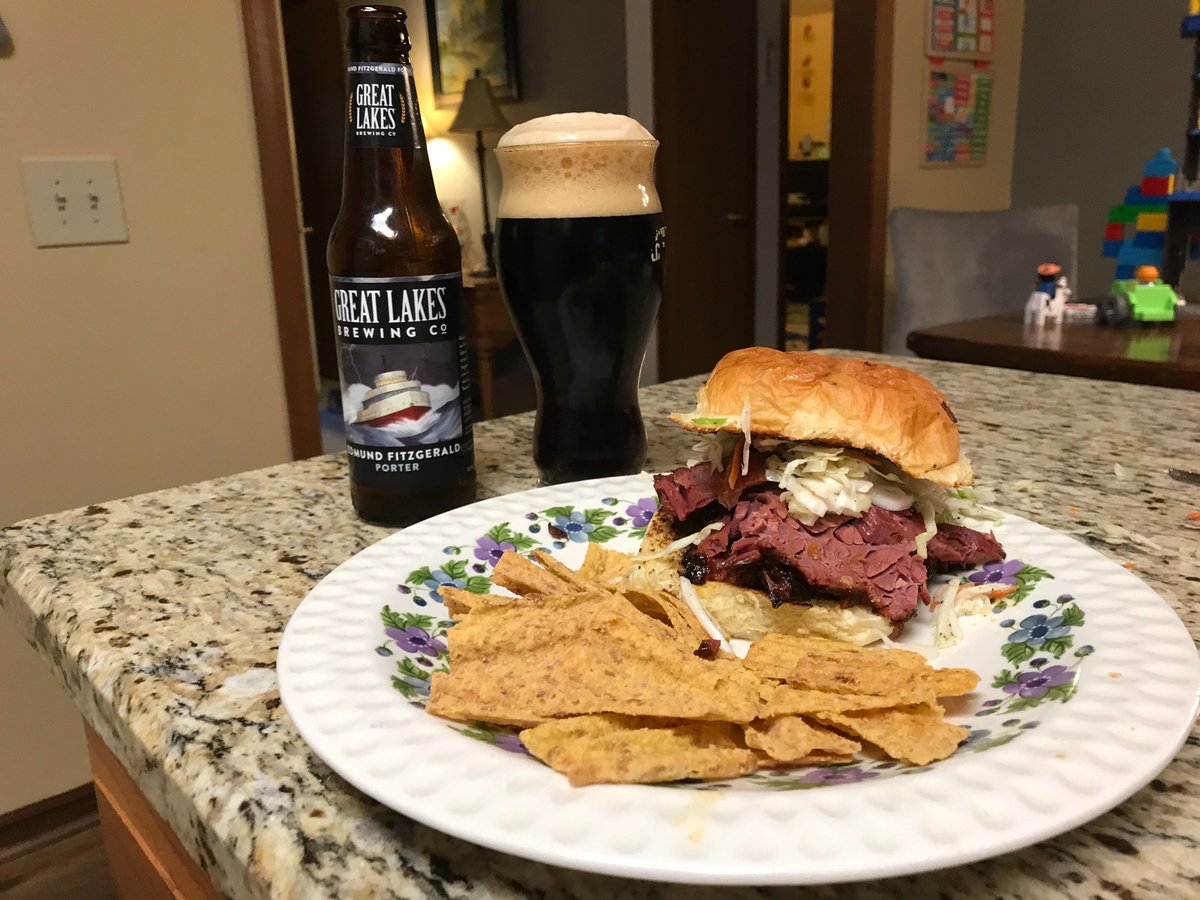 Great Lakes Edmund Fitzgerald bbq marinated brisket, basted with a reduction from the marinade with a side of the same porter. SO FREAKING GOOD. @GLBC_Cleveland