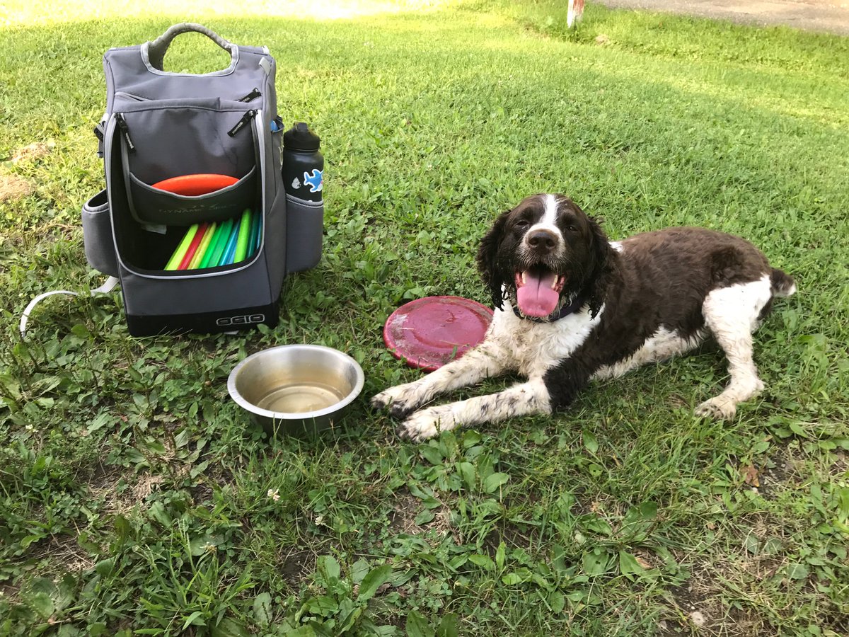 My #discgolf partner. She can’t throw, but I never lose a disc when she’s around!