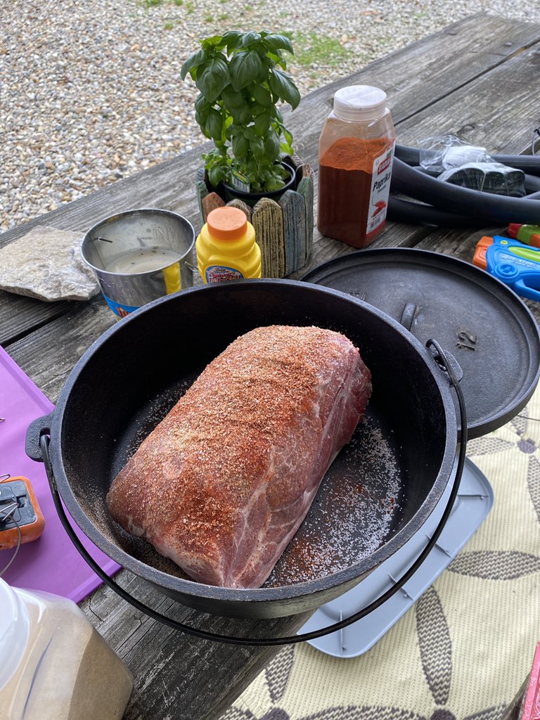 I’m doing a pork shoulder over the fire today. We tried one last week and I learned a lot about doing it halfway decent over a campfire. 🤪